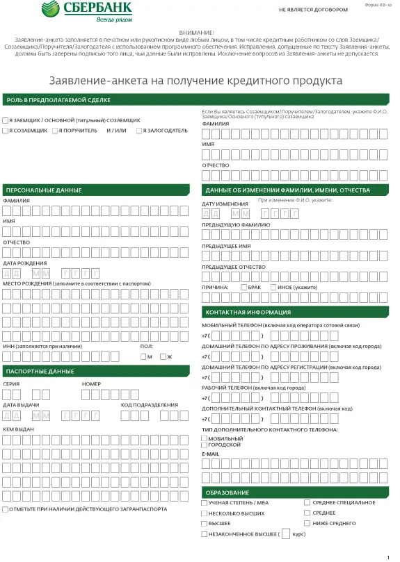 - заполняется собственноручно или с помощью технических средств заемщиком/поручителем/созаемщиком либо работником банка со слов заявителя;